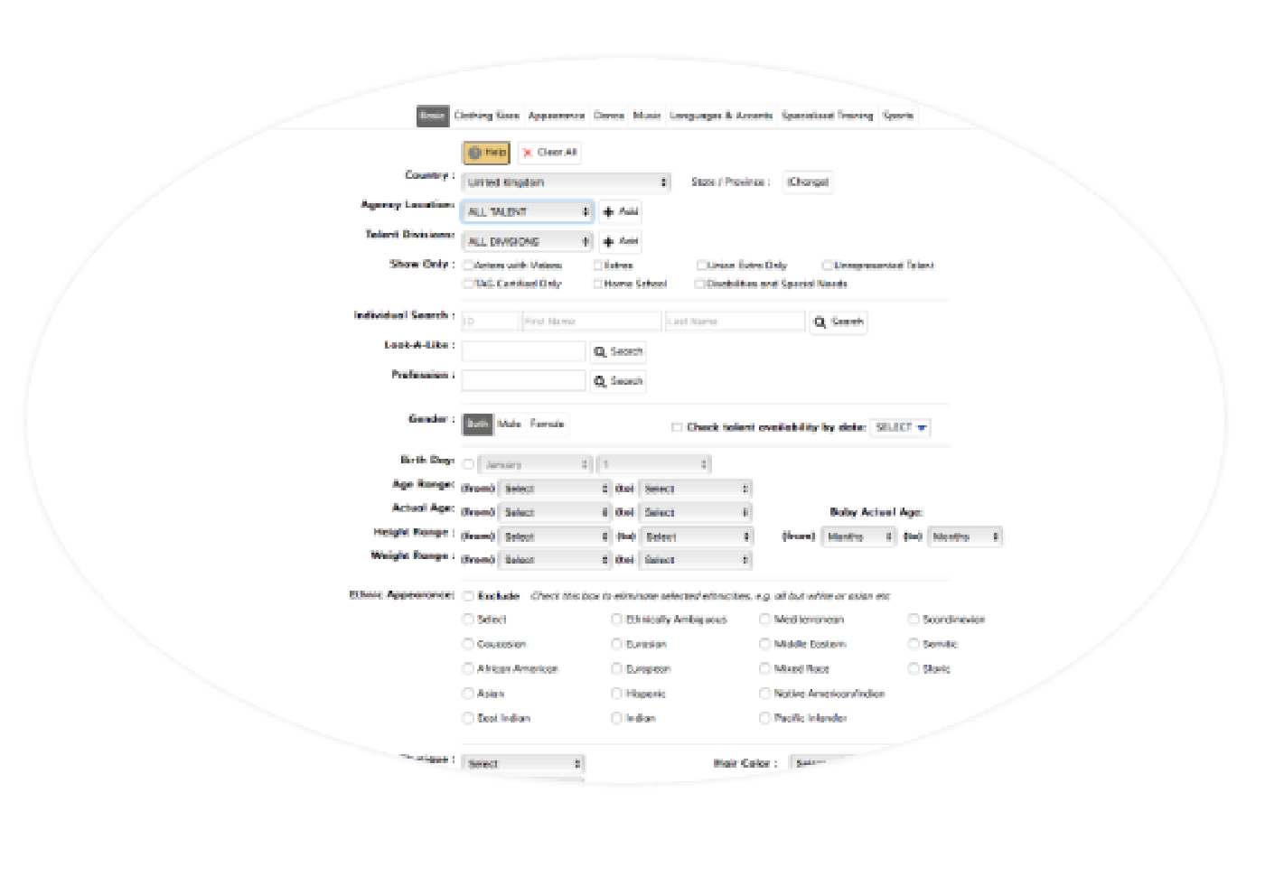 • Search unrepresented talent and models internationally, filter potential talent/model to your specific needs